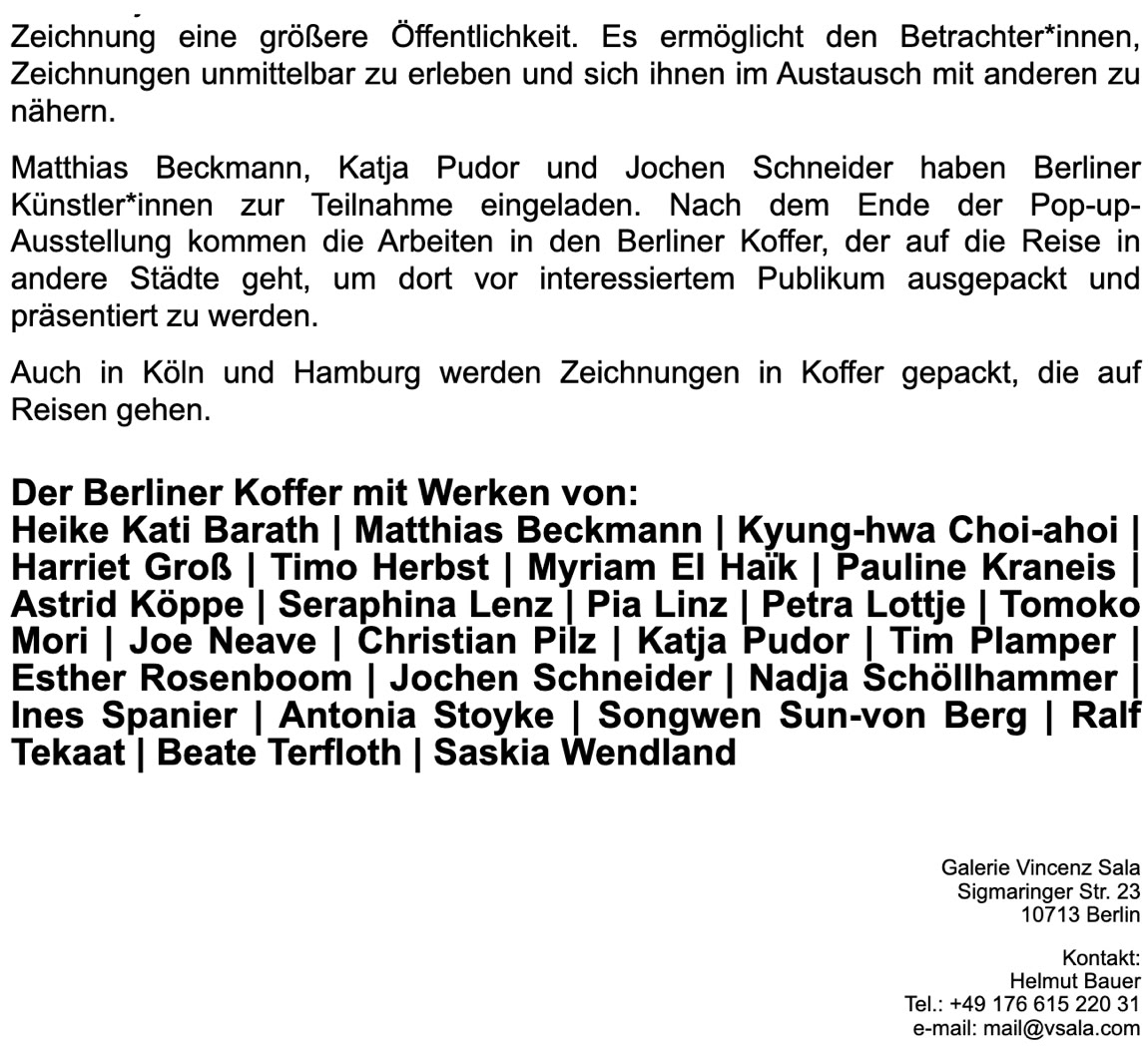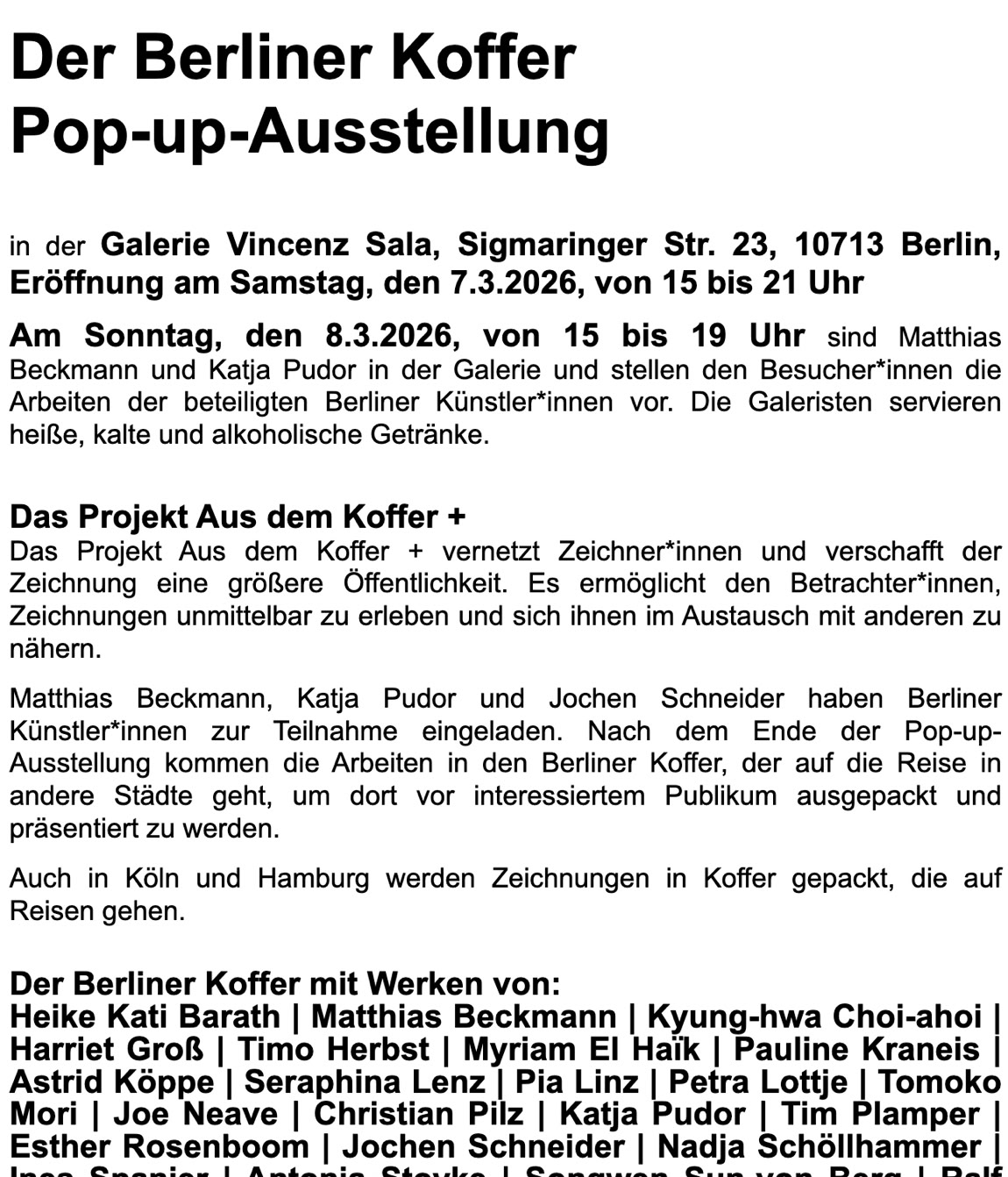 AUS DEM KOFFER +ZEICHNUNGEN AUF REISEN OPENING ON 7 MARCH FROM 3 TO 9PMOPEN ON 8 MARCH FROM 3 TO 7PM