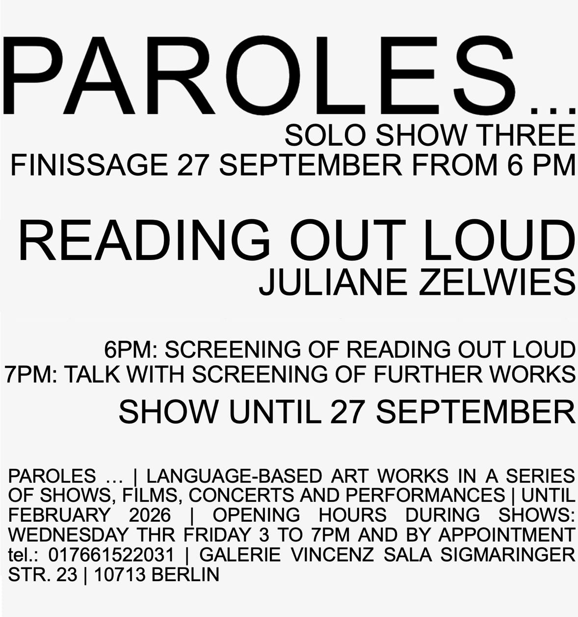 LANGUAGE-BASED ART WORKS IN A LONG SERIES OF SHOWS, FILM SCREENINGS, CONCERTS AND PERFORMANCES INSPIRED BY DALIDA’S „PAROLES… PAROLES…“, HER VOICE AND MANY OTHER VOICES