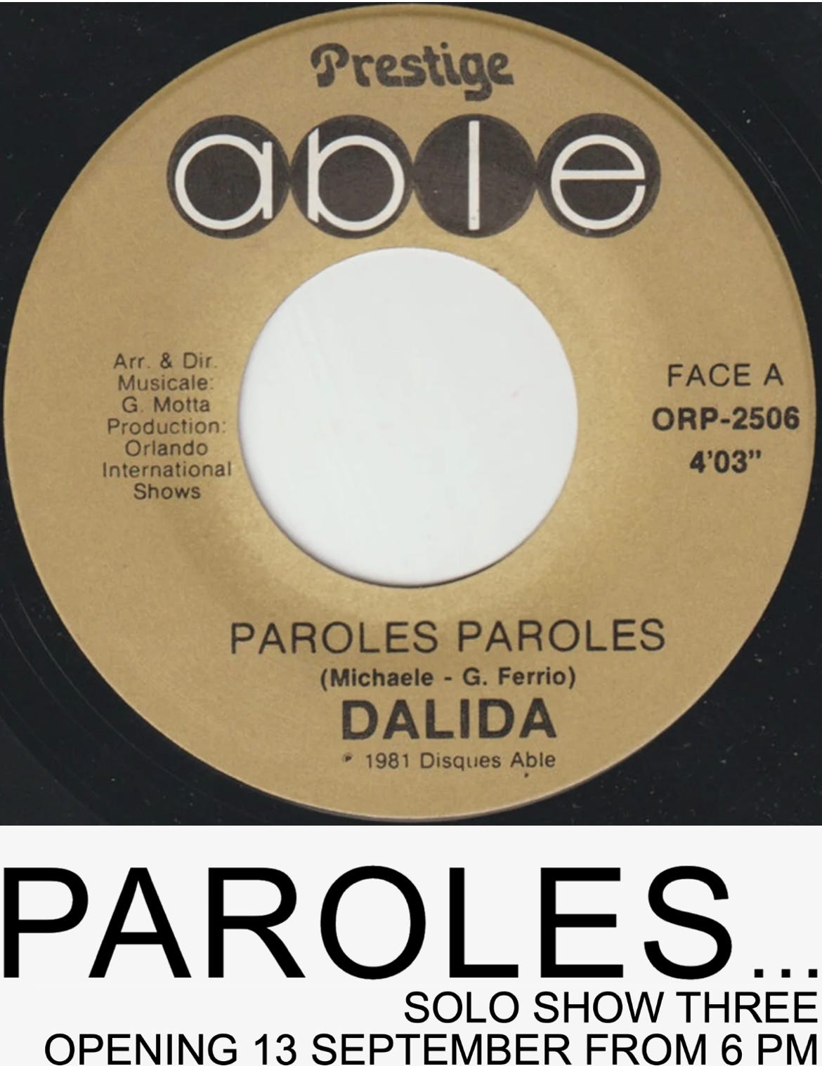 LANGUAGE-BASED ART WORKS IN A LONG SERIES OF SHOWS, FILM SCREENINGS, CONCERTS AND PERFORMANCES INSPIRED BY DALIDA’S „PAROLES… PAROLES…“, HER VOICE AND MANY OTHER VOICES