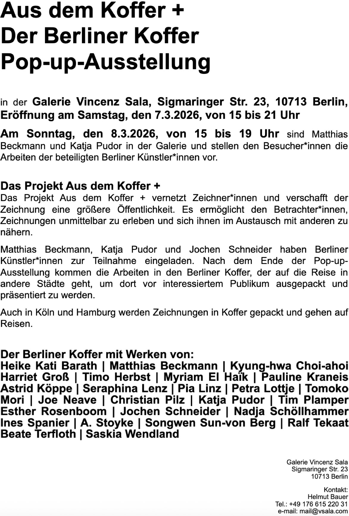 AUS DEM KOFFER +ZEICHNUNGEN AUF REISEN OPENING ON 7 MARCH FROM 3 TO 9PMOPEN ON 8 MARCH FROM 3 TO 7PM