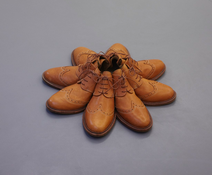 leather, custommade for the feet of the artist, 51x51x12 cm
